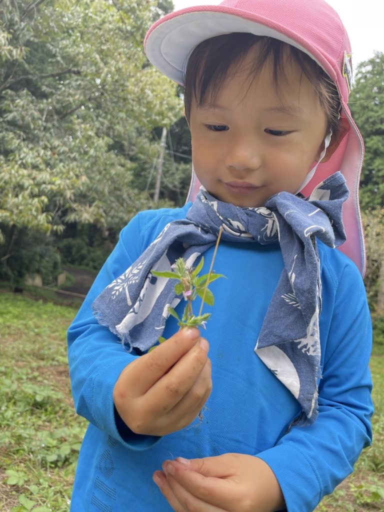 Hちゃんは自然の美しさを見つけて喜んでいる。