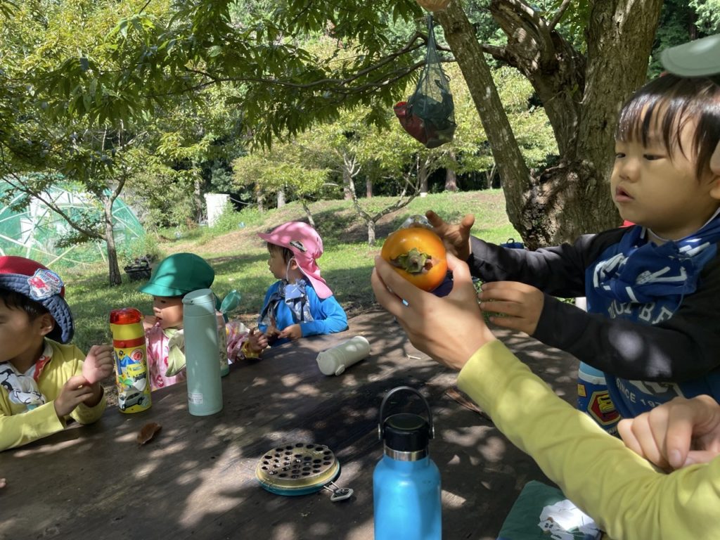 初めて柿を食べる子もいて
