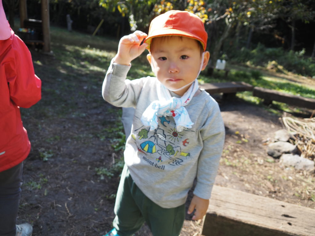「この帽子かぶせて。」