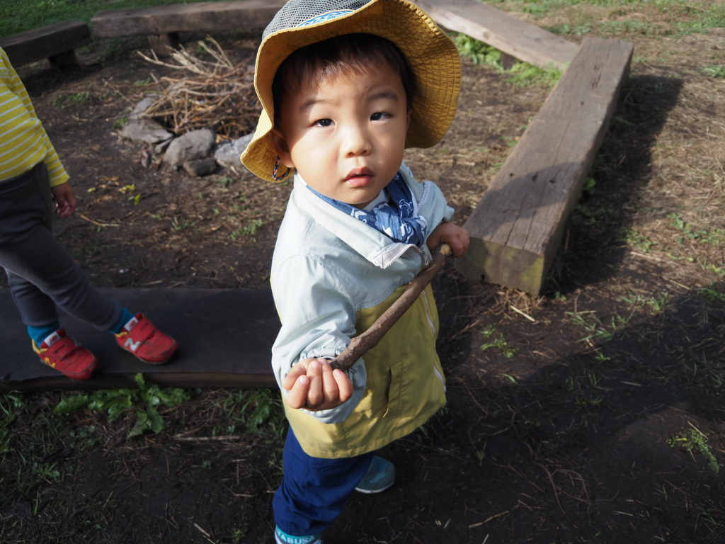 朝 おうちから持ってきた棒を