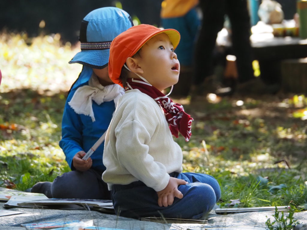 子どもたちの 顔が 上を向く。