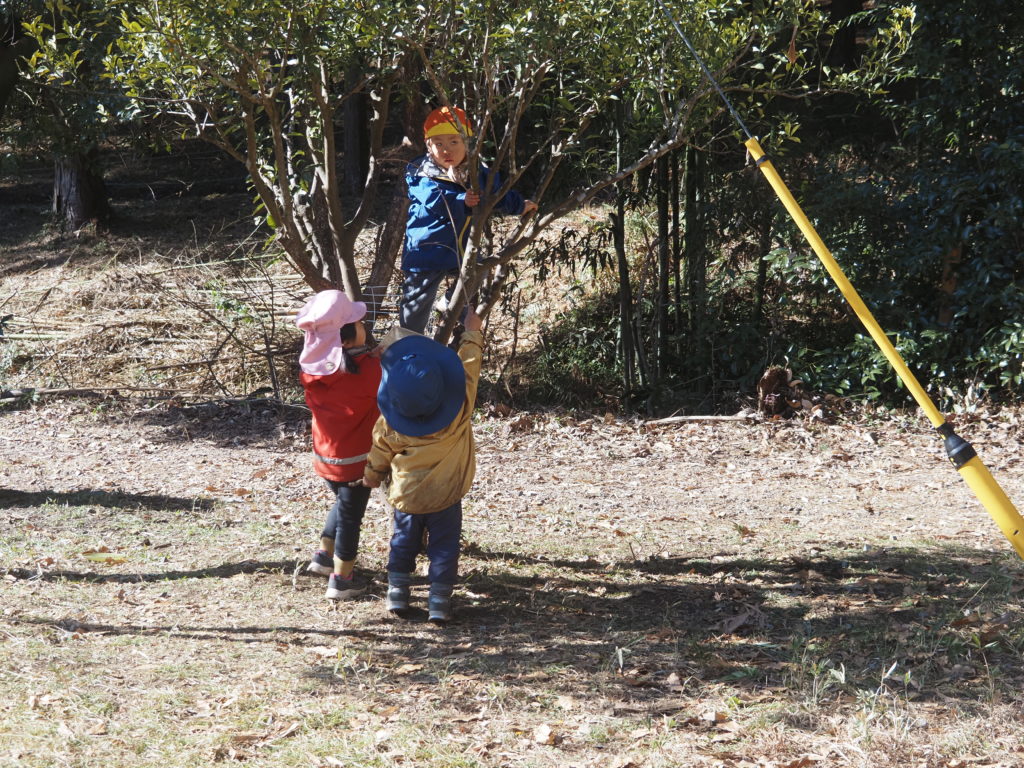 実をとろうとしている Sくん。