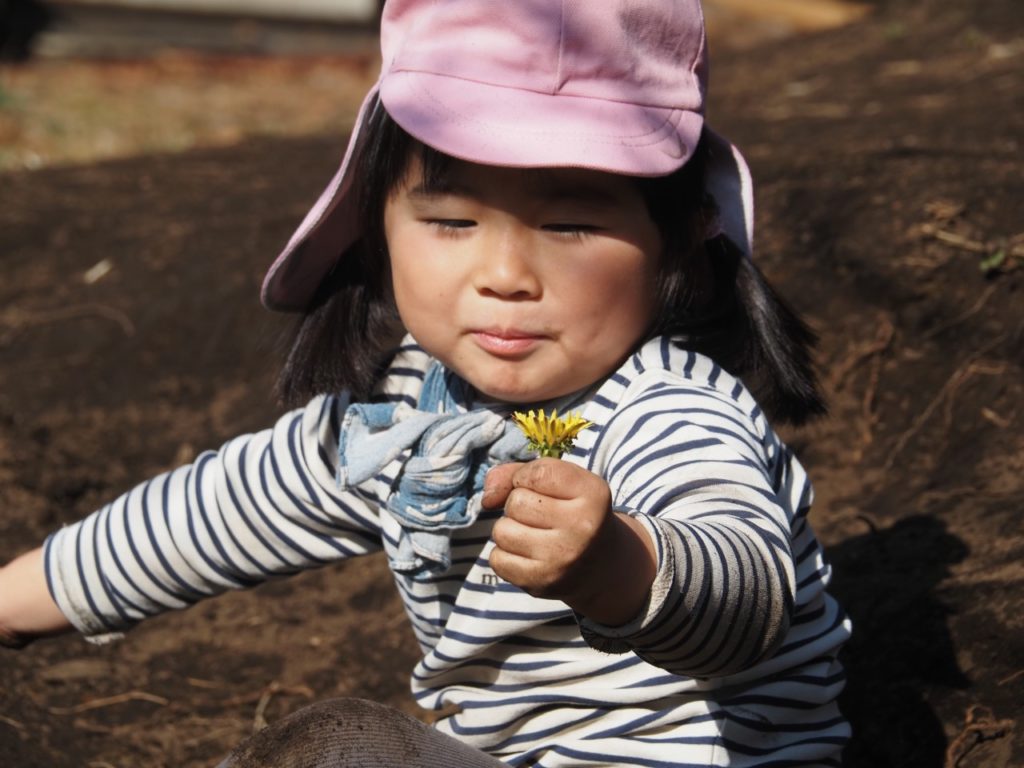 お花が大好きなHちゃんは誰よりも先に、たんぽぽを見つけた。