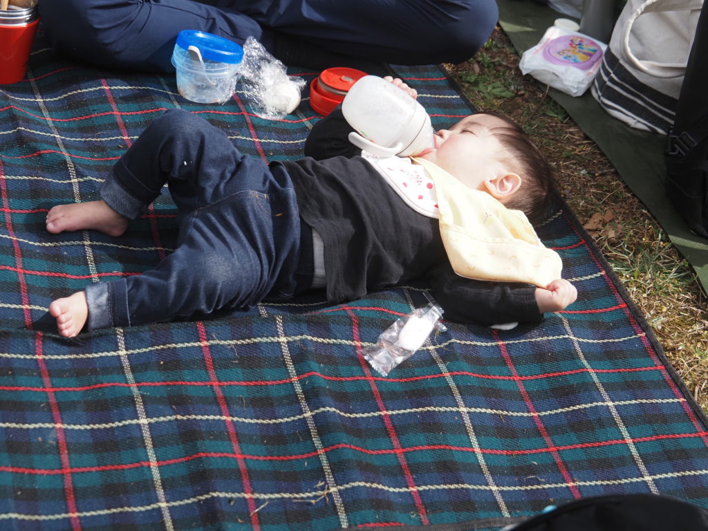 電池が切れた 子どもたち(ミルク片手に笑)。