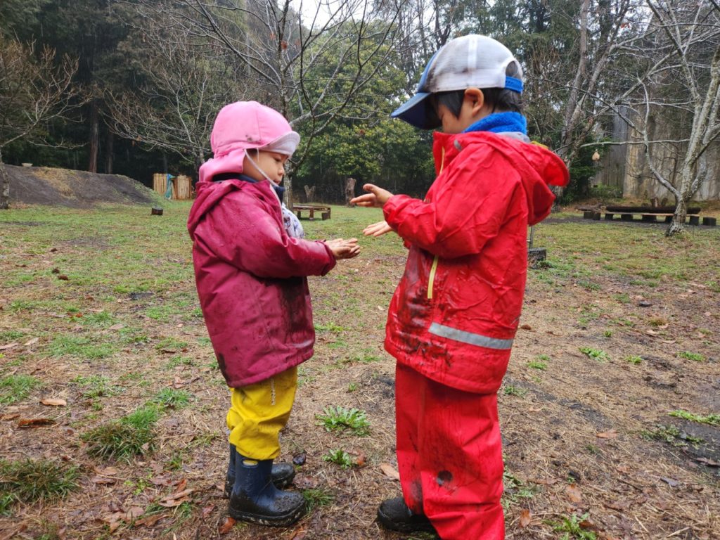 泥遊びは楽しいけど、K君とS君は気になることが・・・