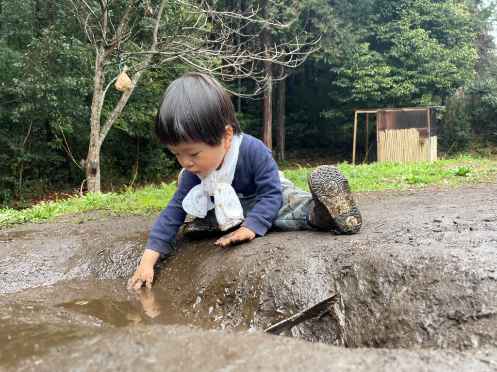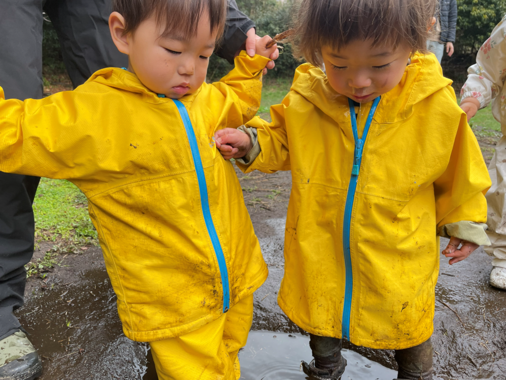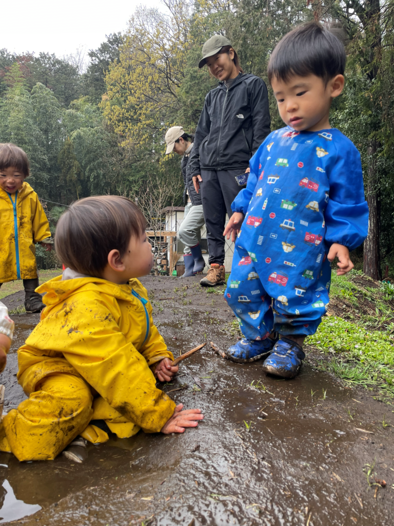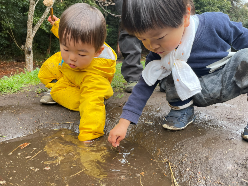 水たまり付近は複数の子どもが集まり、仲良く遊ぶ場面がほとんどだが