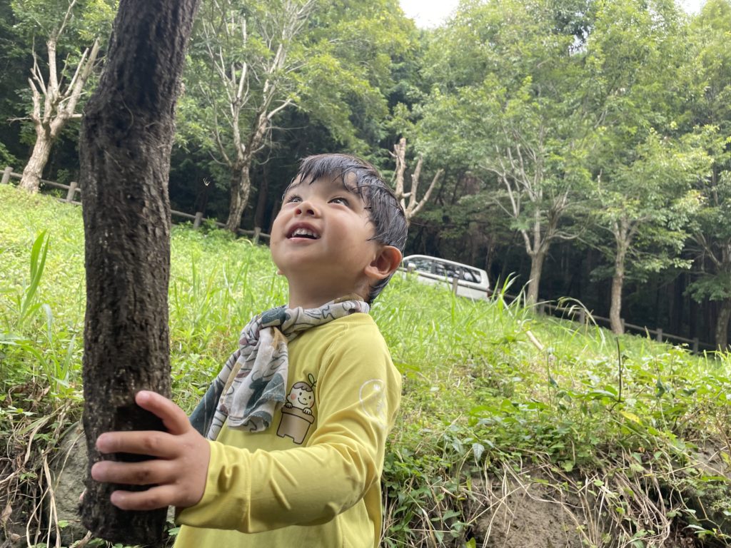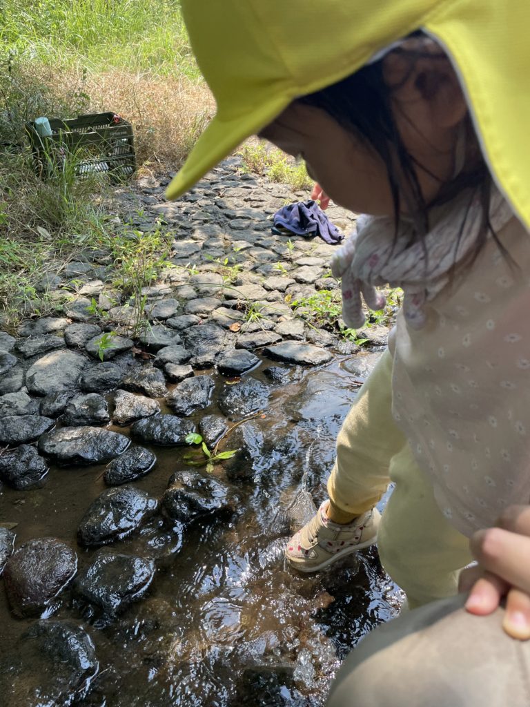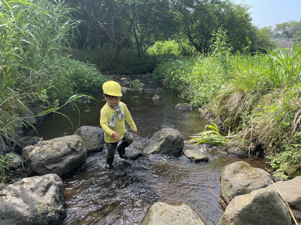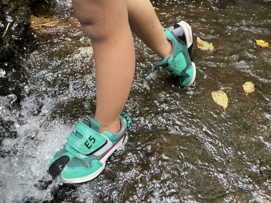 でもHちゃんは水遊びをする男の子たちを見ながら少しずつ水に近づき、木の棒を持って沢の水面をぱちゃぱちゃと叩いていた。