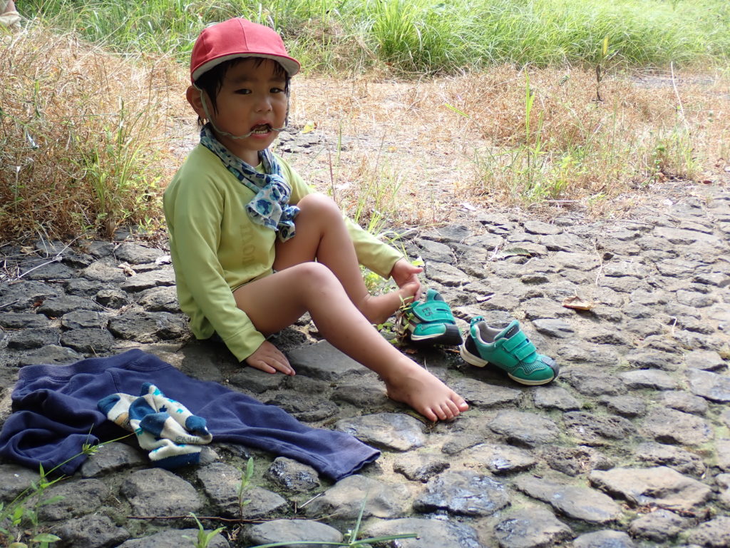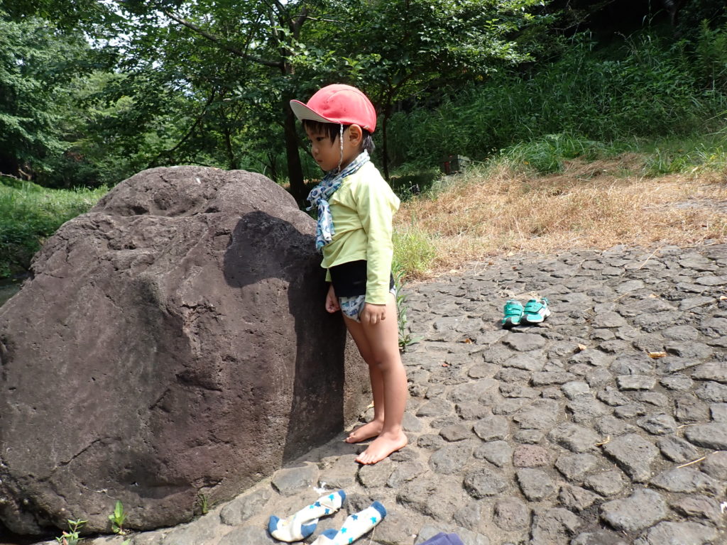 Hちゃんはこまめベースの沢遊びも水に入らない。