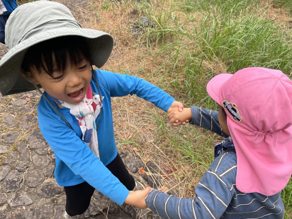 と手を差し伸べる。するとMH君もすぐに泣き止んで一緒に1歩1歩踏み出す。