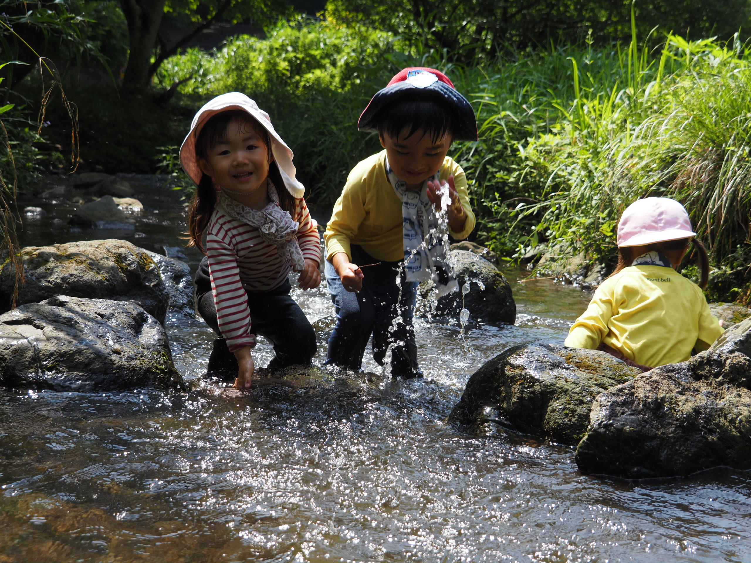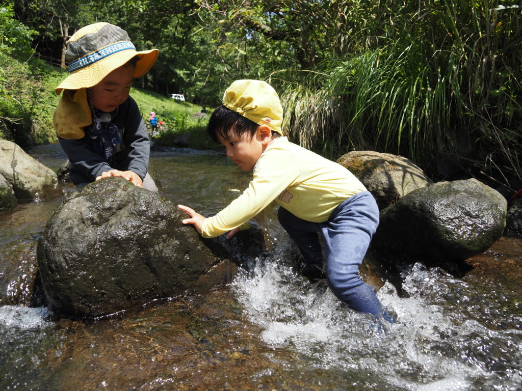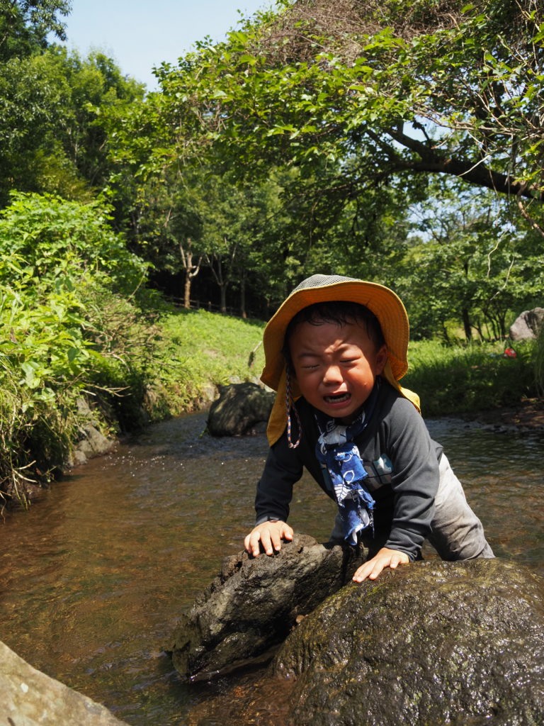 Hくんの 石渡りを泣きながらも見て