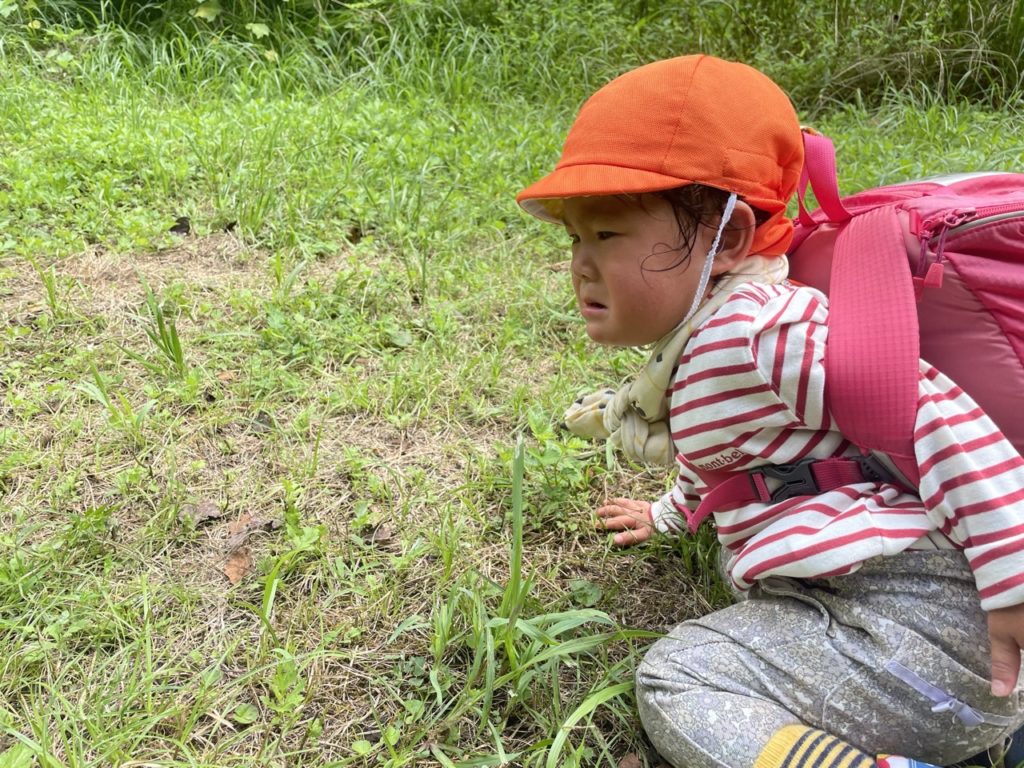 周りの子がザックを背負って移動する中かたくなにザックを背負うことはしなかった。