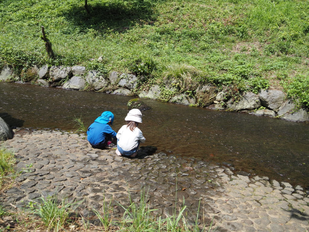 さっきの ふたりが 沢べりでデート?