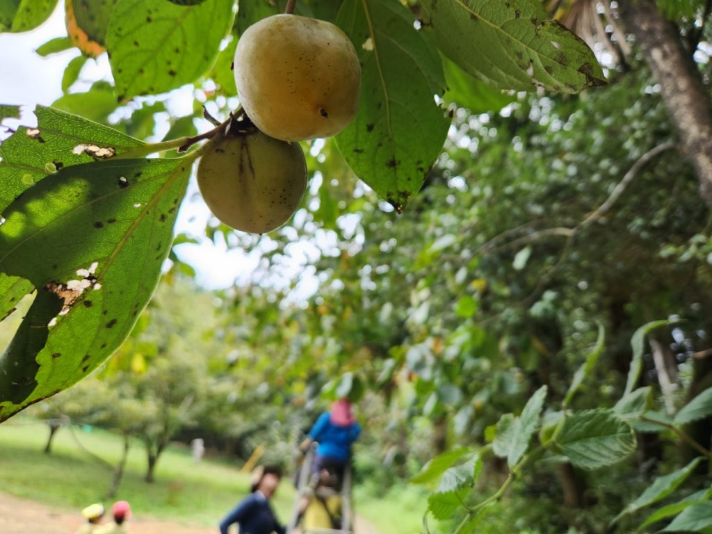 柿を回転させ、ねじることで簡単に枝から柿を離したのだ。
