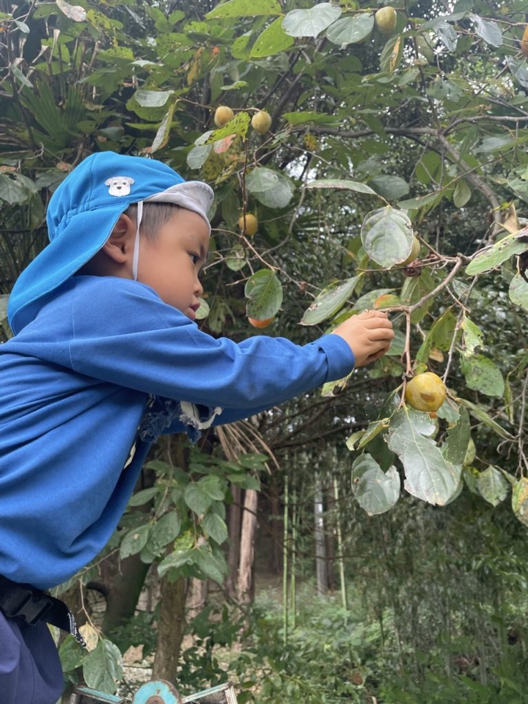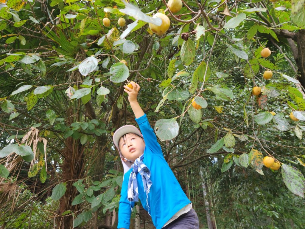 K君が柿を取ると