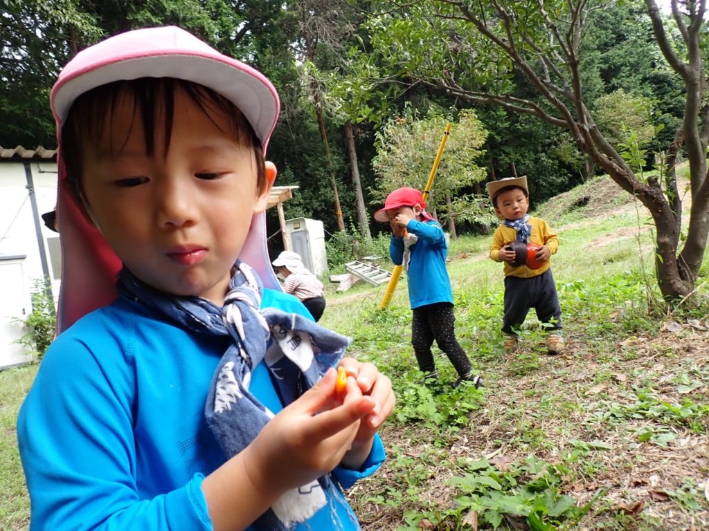 「まだ早かったのかな。もっとオレンジ色にならないと食べられないのかも。」