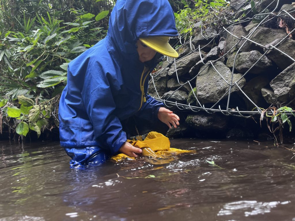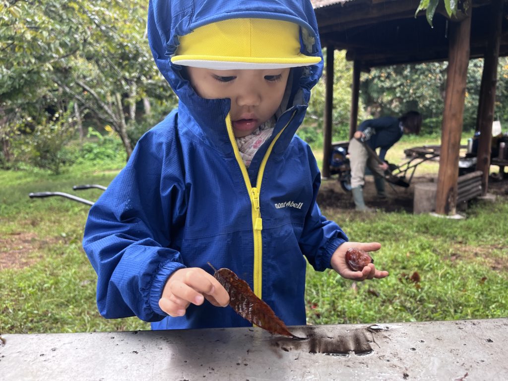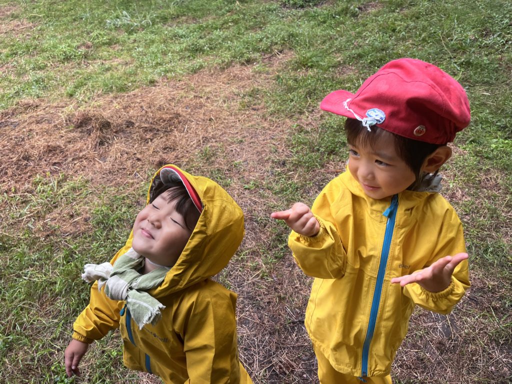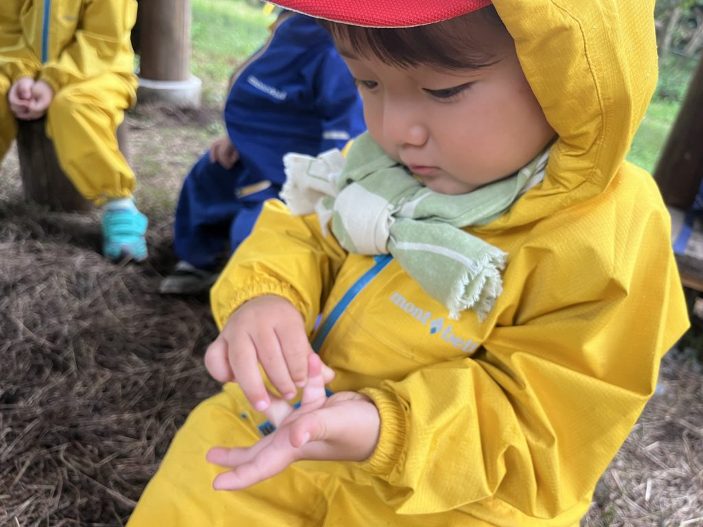 「見て!雨が降ったら葉っぱが変わったよ」と、雨に濡れて葉っぱの色が変わったことに気がついたHちゃん。