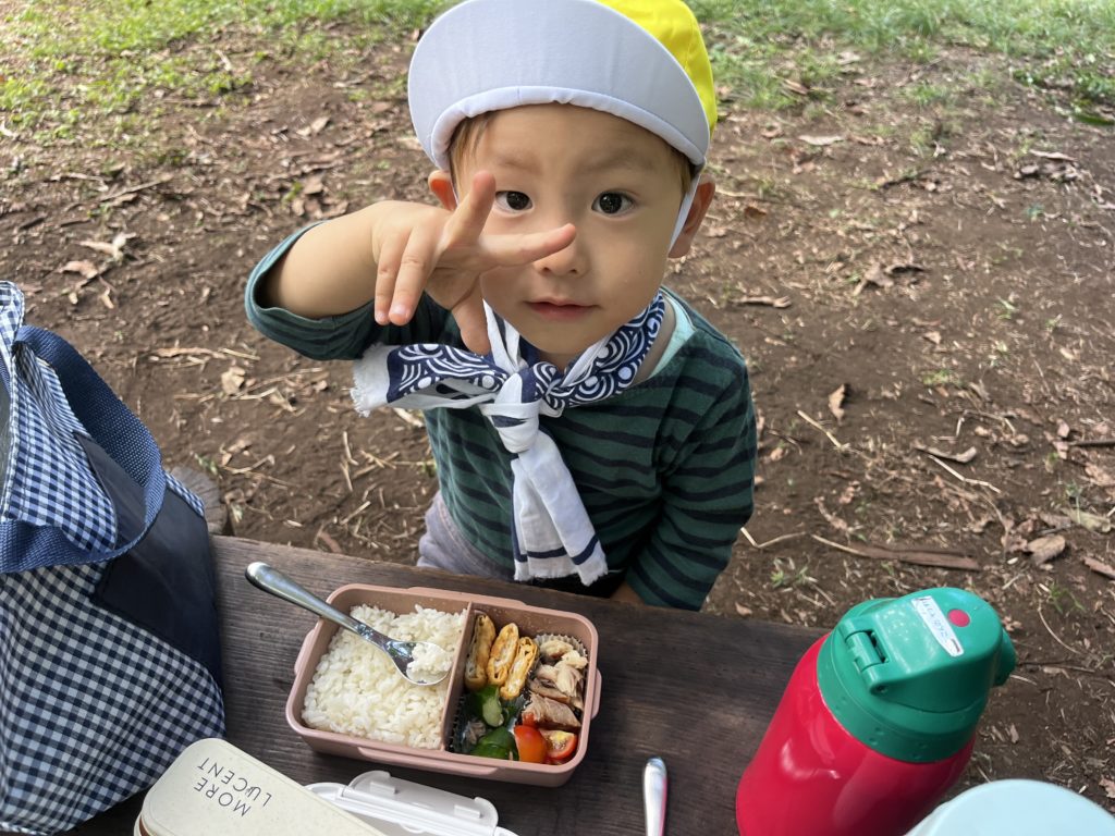お弁当はみんな揃ってから食べるんだ。(フライングして食べている様子を撮ったらピースの余裕まで笑)