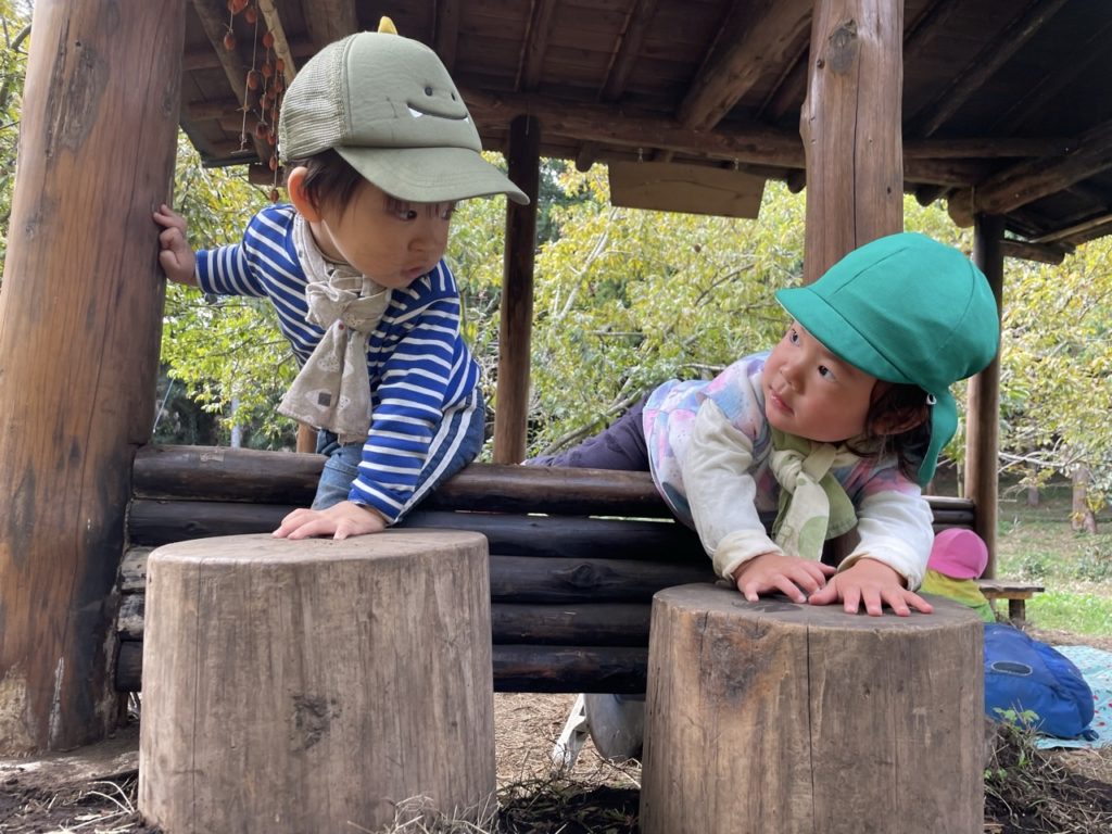 NちゃんとK君は東屋に寄りかかって遊んでいた。
