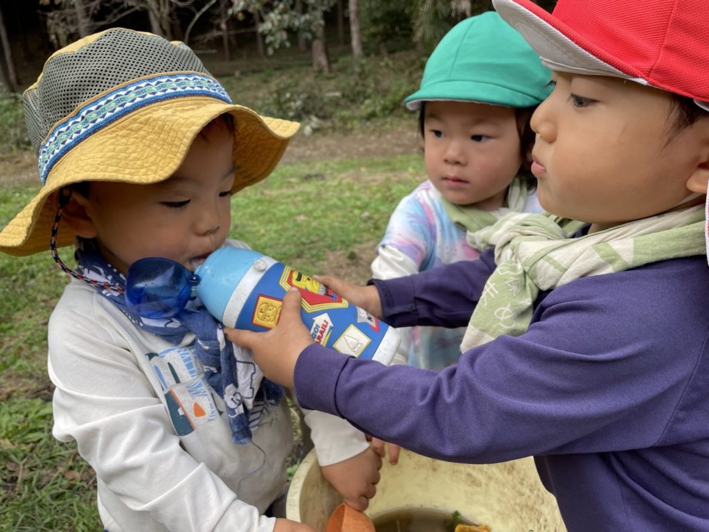 水筒を持ってくることが優しい関わりだとどこかで学んでいたのかな。
