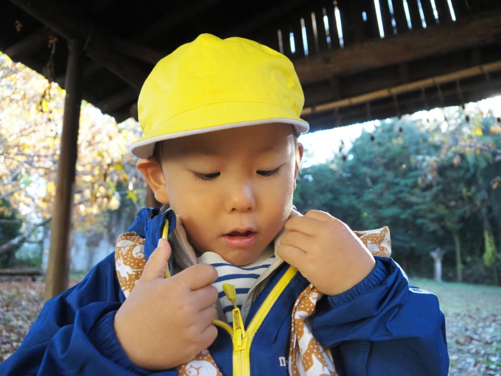 いつもは嫌がる帽子も被り、首巻もしっかりとしめて朝の会に参加。