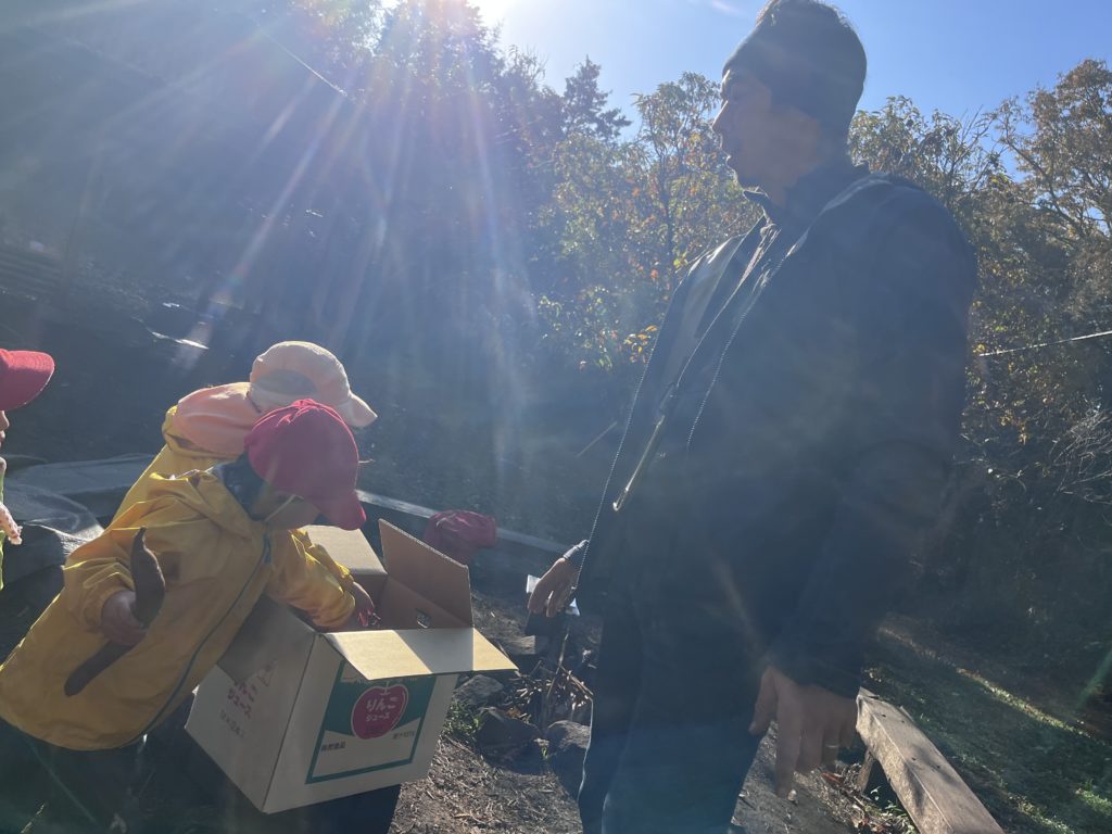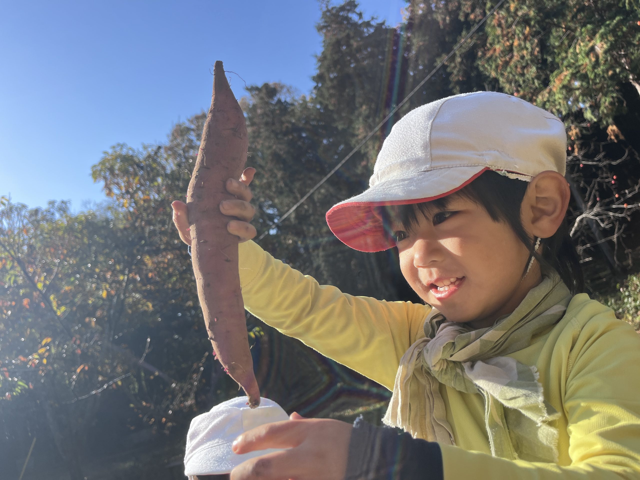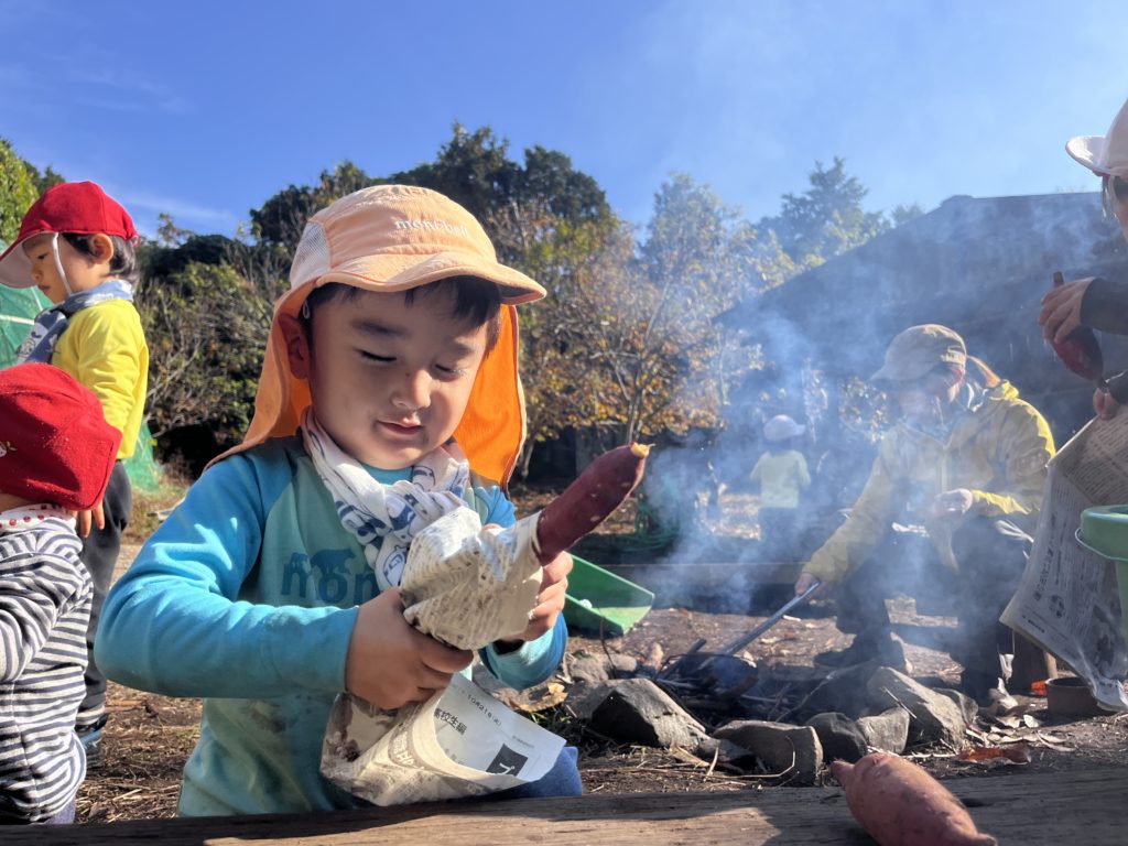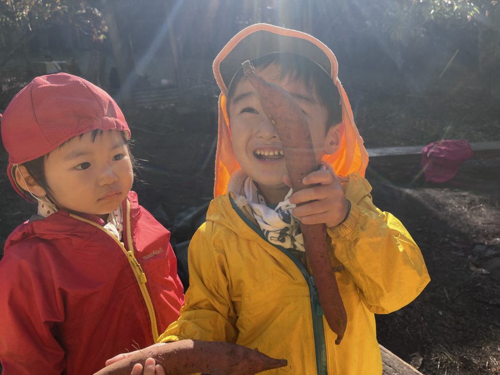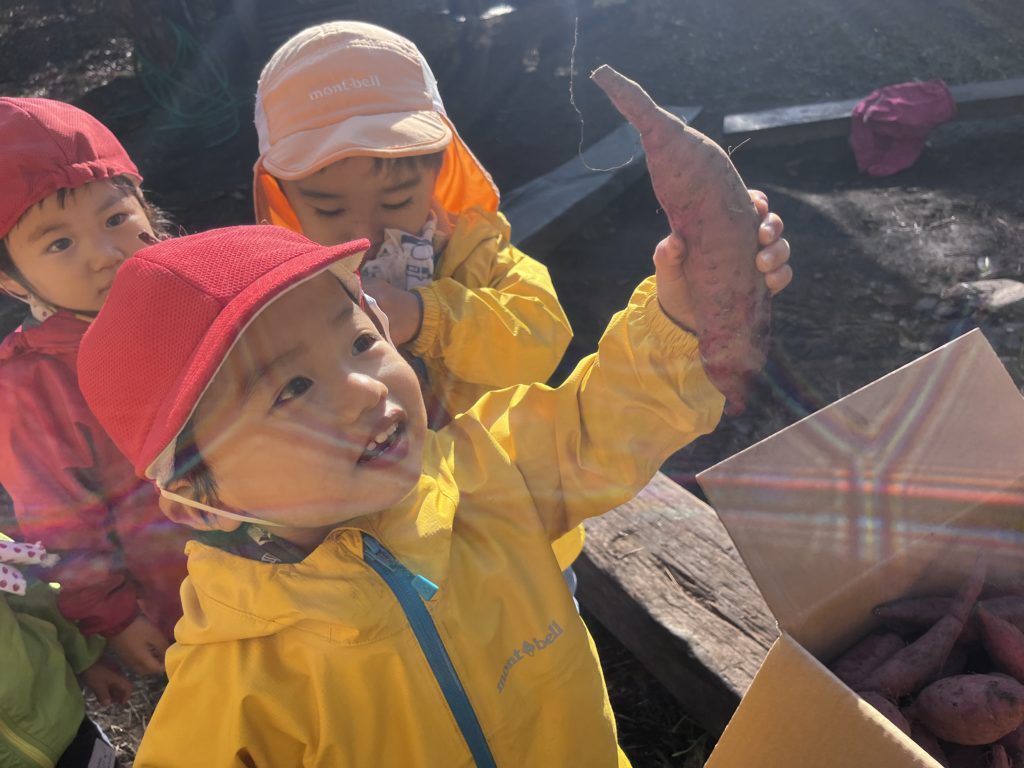 子どもたちはお芋を手にした瞬間、笑顔が溢れる。