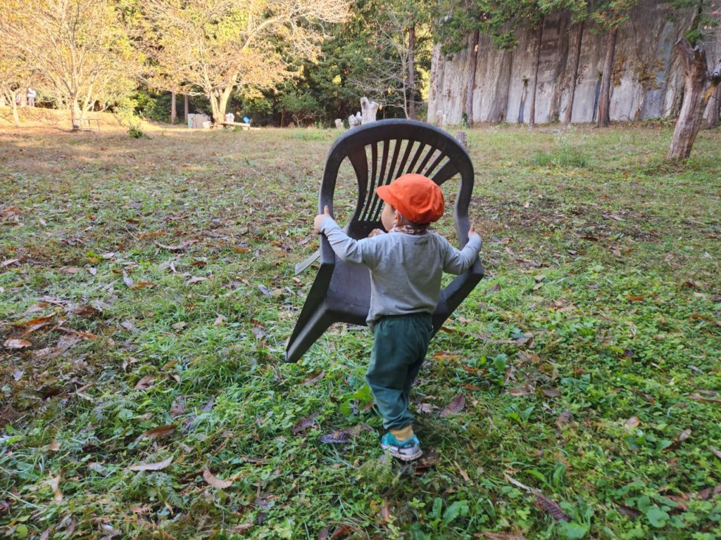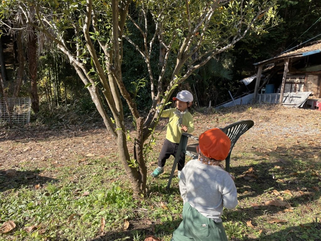 「金柑の椅子」と言うのは以前他の子が、金柑を取るために椅子に登って取った時使用していたものの事