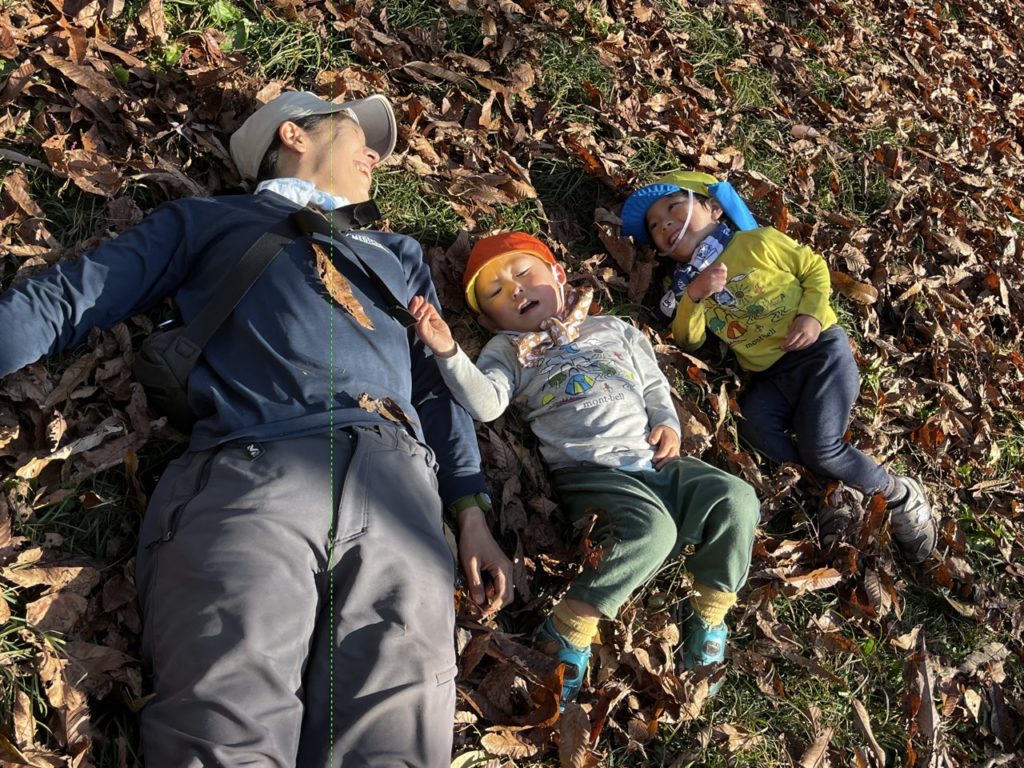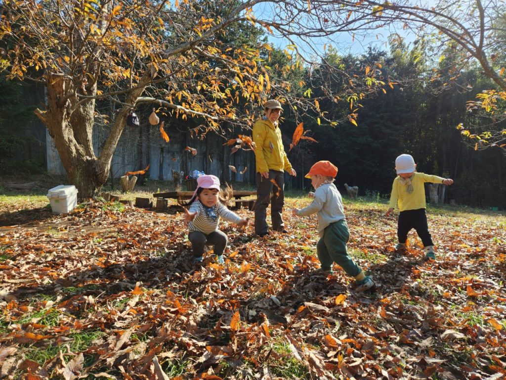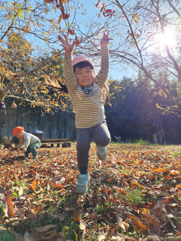 落ち葉での遊びはどんどん周りへ広がっていく。
