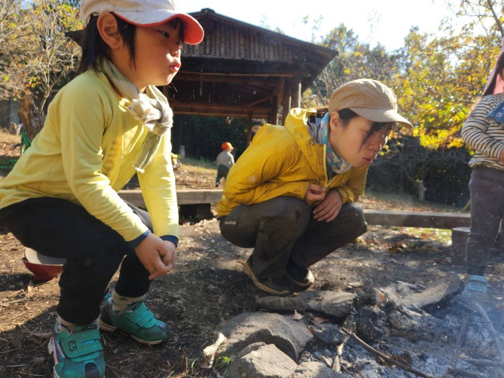 火を大きくするために息を吹きかけると
