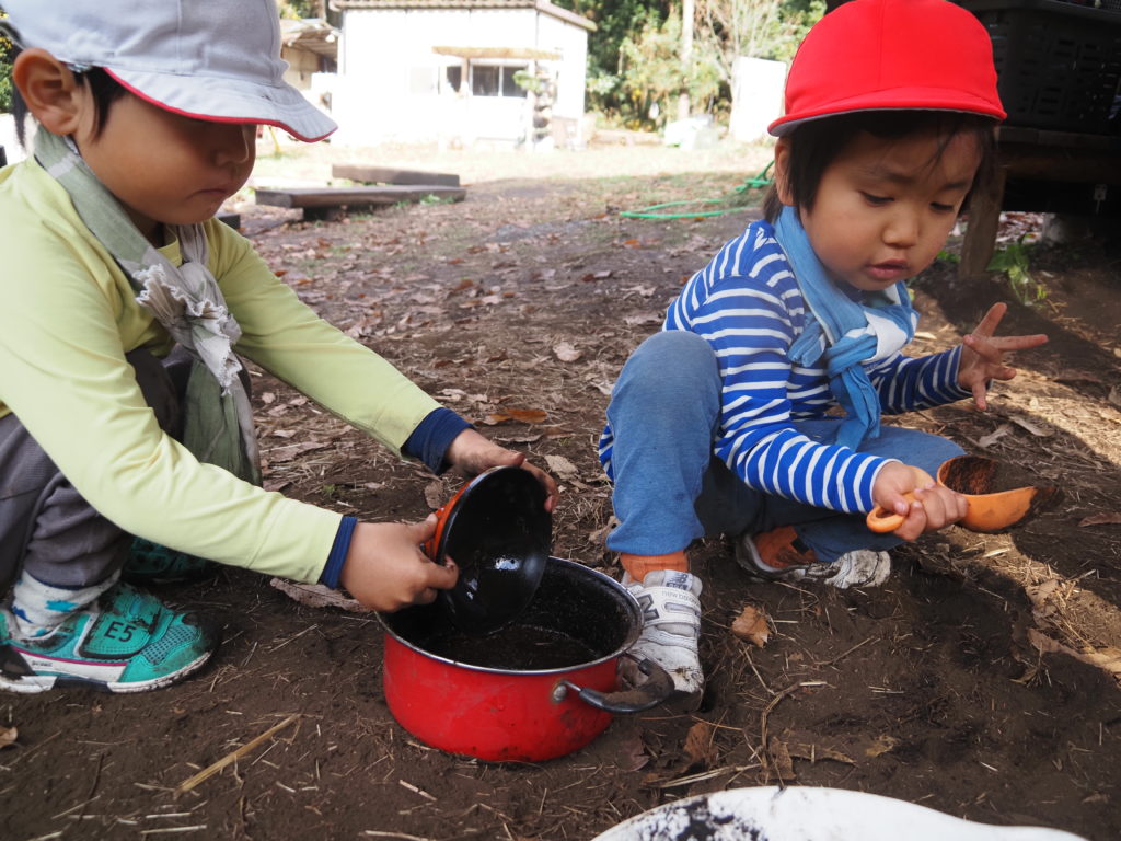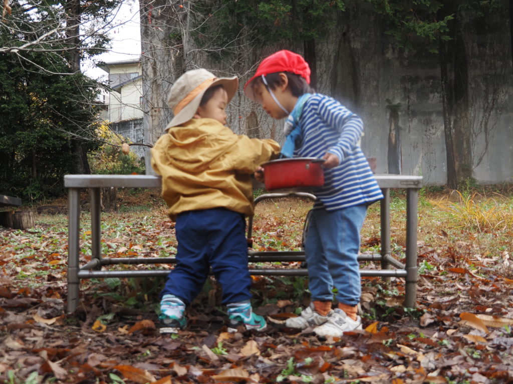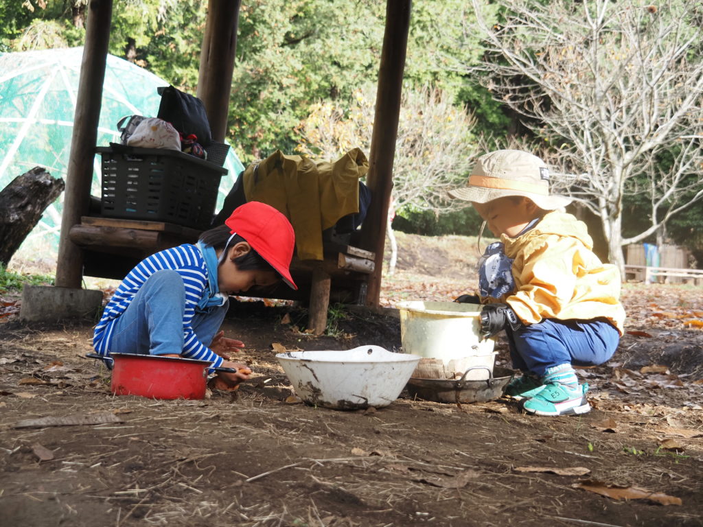 おままごとをしている 子たち。