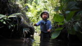今日は 泥遊びをしているなかまのそばで