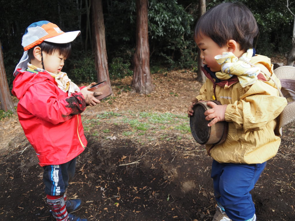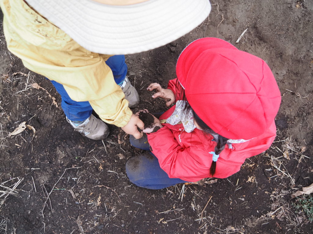 いっしょに土をいじりながらいるところを見ると
