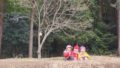 葉っぱを集めに行く先輩を見て、