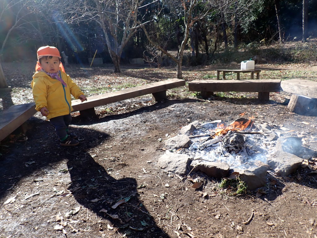 最年少、1歳半のMくんも、焚き火に興味津々。