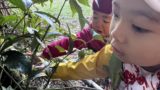 葉っぱを集めに行く先輩を見て、