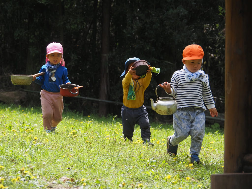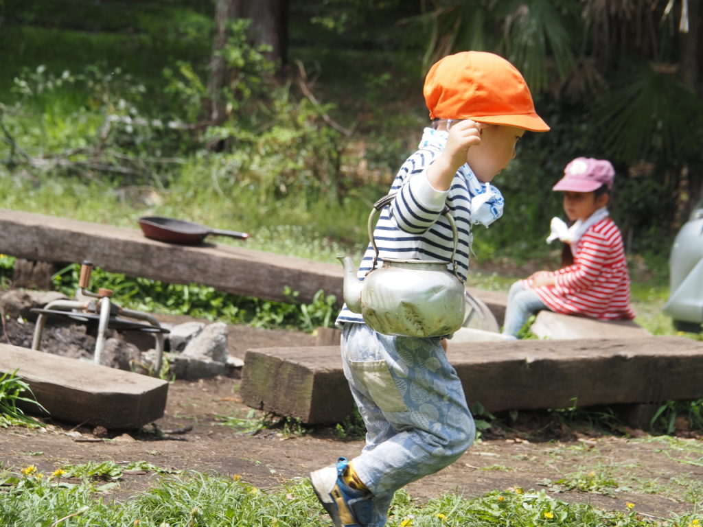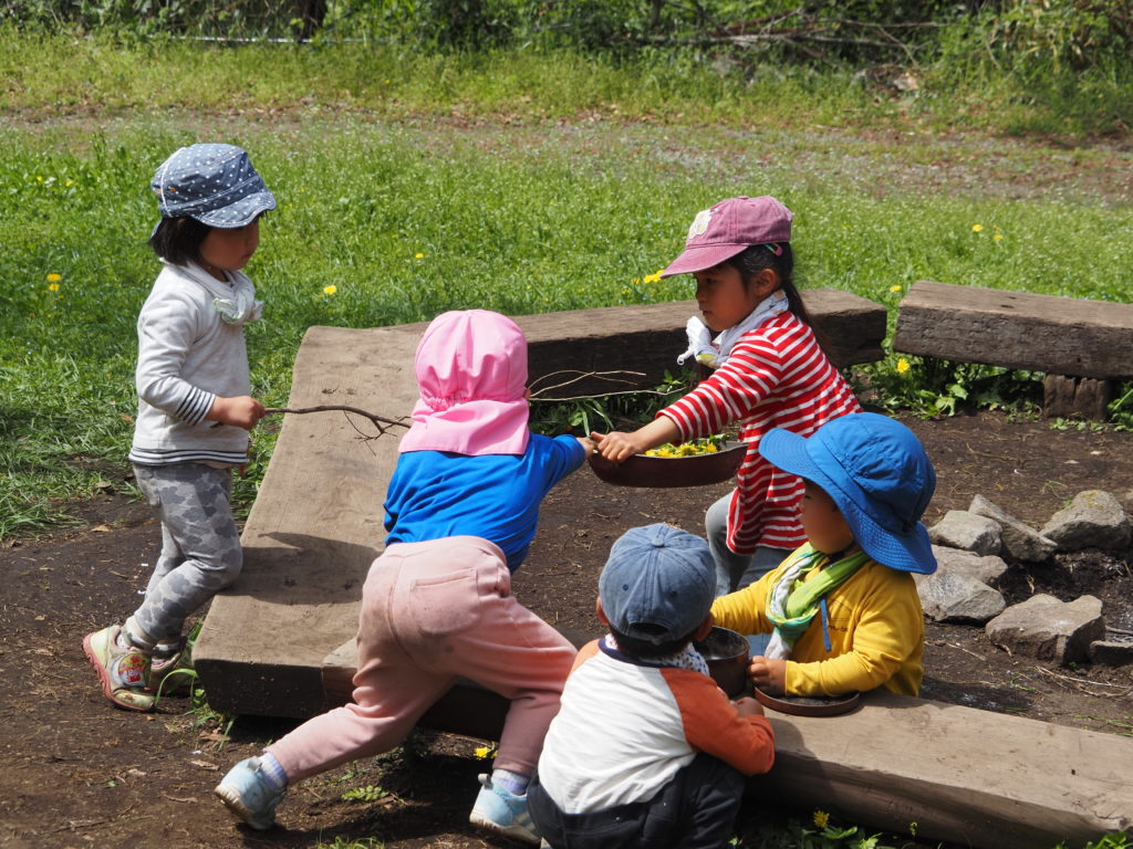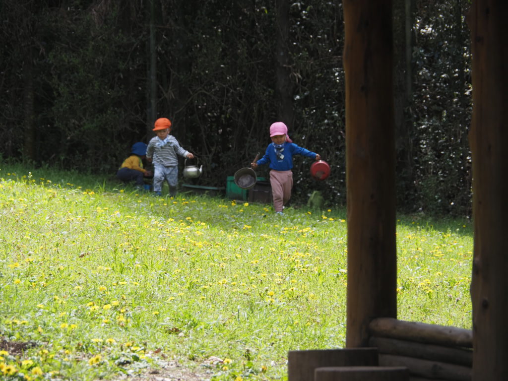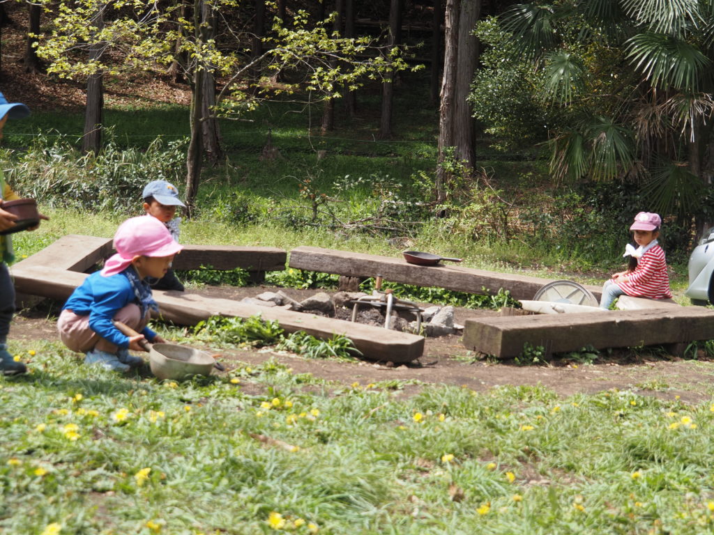 フライパンにたんぽぽを入れて おままごとをしていたが